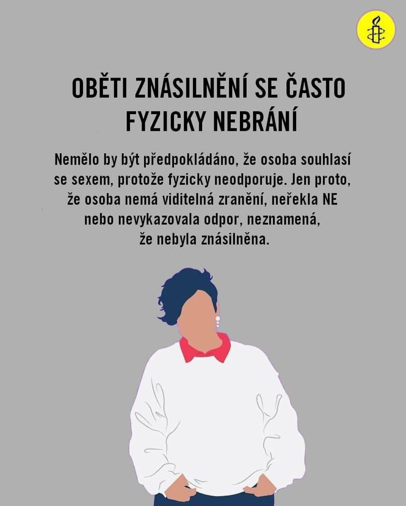 Česká republika tak musí zákonem jasně stanovit, že sex bez souhlasu je znásilnění. Otázkou není, zda osoba řekla „ne“, ale zda řekla „ano“. Uzákonění této definice vyšle jasný signál obětem, pachatelům, orgánům, které jsou zapojeny do vyšetřování a rozhodování, i všem ostatním, že jakmile chybí souhlas, jde o znásilnění.
