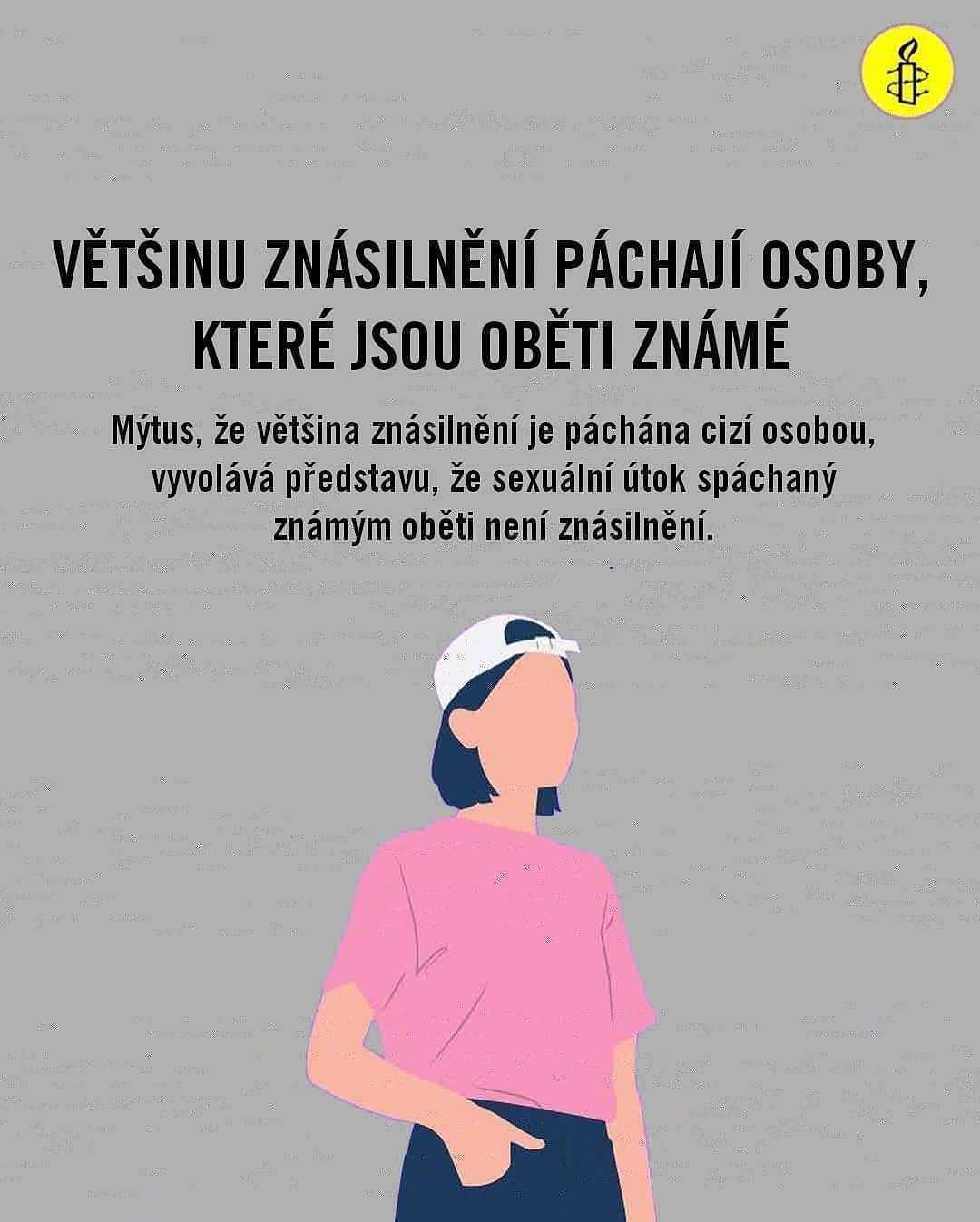 Přesto je tomuto činu často věnováno velmi málo pozornosti. Výsledkem je nízká podpora obětí, zlehčování dané problematiky a vytváření a udržování mýtů, které jednoznačně přispívají k tomu, že oběti jsou vystaveny psychickému utrpení i po nahlášení znásilnění na policii (tzv. sekundární viktimizace). V důsledku toho se oběti často nedomohou spravedlnosti. Téměř tři pětiny dospělých v Česku si myslí, že si za znásilnění v jistých případech mohou ženy samy. Vyvrátit všechny mýty a nastavit systém, který skutečně pomůže obětem znásilnění, je jistě běh na dlouhou trať. Již dnes ale můžou zákonodárci učinit první kroky ke zjednání nápravy, a to zavedením definice znásilnění v trestním zákoníku, která bude založena na absenci souhlasu.