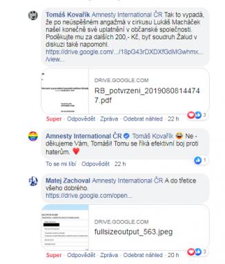 „To, že se na našich sociálních sítích objevuje prakticky denně řada nevybíravých a útočných komentářů – už pro nás, bohužel, není nic zvláštního. Ale tato nezvyklá situace nás skutečně mile překvapila. Místo zbytečných hádek s dotyčným autorem se za nás lidé postavili a začali pod zmíněný komentář nahrávat potvrzení o svých darech pro Amnesty,“ říká ředitel české Amnesty Mark Martin a dodává, že se následně začali přidávat další a další lidé.