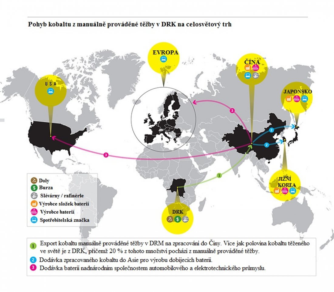vytěženého kobaltu pochází z Demokratické republiky Kongo.