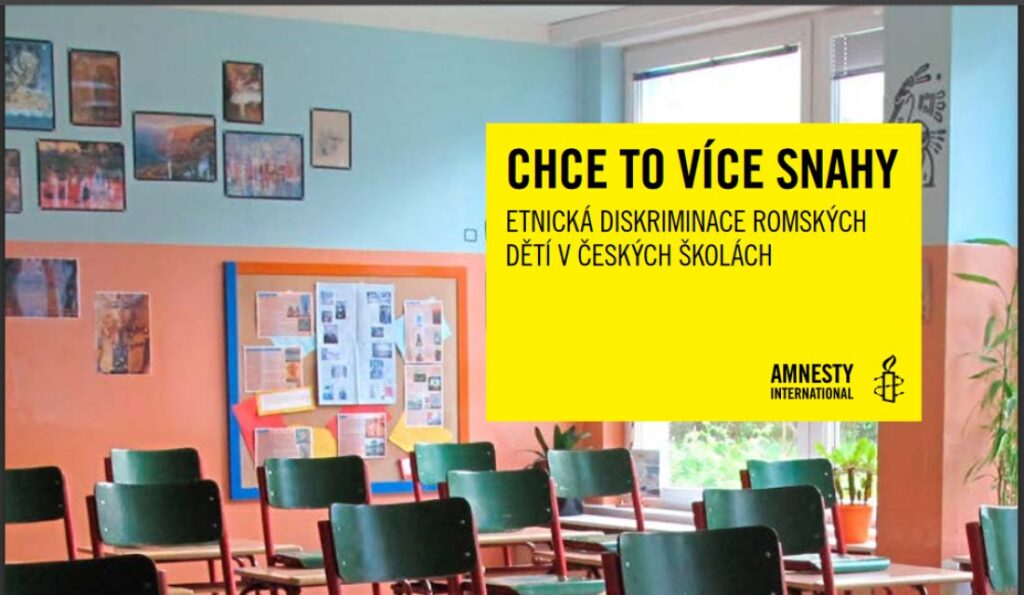 Amnesty International dlouhodobě kritizuje vládní politiku, která dosud se segregací romských dětí již od předškolního věku bojovala velmi neefektivně. Ve výzkumné zprávě z roku 2015 s názvem Chce to více snahy – Etnická diskriminace romských dětí v českých školách jsme zdokumentovali proces segregace a diskriminace romských dětí ve školách. Děti byly často oddělovány v rasově segregovaných třídách či školách, nebo dokonce rovnou posílány do škol pro děti s lehkým mentálním postižením. V těchto školách tvořily romské děti třetinu žáků navzdory pouhým 3 % celkového populačního zastoupení Romů v České republice. Vydáním v pořadí již druhé výzkumné zprávy odstartovalo hnutí Amnesty zmíněnou kampaň Smažme rozdíly ve vzdělávání romských dětí, v rámci které jsme předali Ministerstvu školství, mládeže a tělovýchovy petici s téměř dvěma a půl tisíci podpisy. Více o kampani naleznete ZDE.