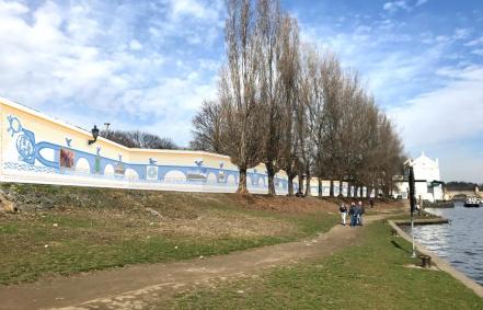 A vše jsme přichystali taky pro pomník, který by měl v Praze vzniknout v květnu a být trvalou připomínkou statečných žen a mužů, kteří se v roce 89 zasadili o svobodu. Sametový most. Bude na Kampě na zdi pod Mostem legií a na 7000 azulejo portugalských dlaždicích znázorní pojetí historie od Masaryka po Havla v podání výtvarníka Petra Síse. Už v neděli jsem na zeď připevnili banner s částí mozaiky jako ochutnávkou. Hotovo by mělo být 3. května 2020, na Mezinárodní den svobody tisku.