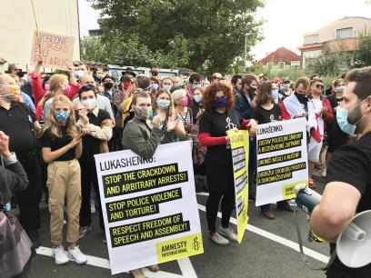 „Během posledního víkendu opět vyšly do ulic Běloruska desítky tisíc lidí. Policie podle odhadů pozatýkala až 200 osob. K poslednímu srpnu bylo také zadrženo nejméně 50 novinářů, jiným byla odebrána akreditace nebo byli vyhoštěni z Běloruska. Na základě pochybných důvodů bylo také zadrženo několik členů opoziční Koordinační rady. Několik protestujících zemřelo,“ řekla při svém projevu ředitelka lidskoprávního hnutí Amnesty ČR Linda Sokačová.