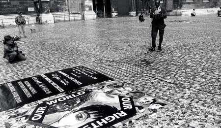 Amnesty vyhotovila miliony pohledů ve tvaru šestiúhelníku s tvářemi lidí z celého světa a vyzvala veřejnost, aby pohledy podepsali a zaslali je Amnesty. Poté z navrácených pohledů vytvořila největší patchwork na světě na Stephanplatze ve Vídni.