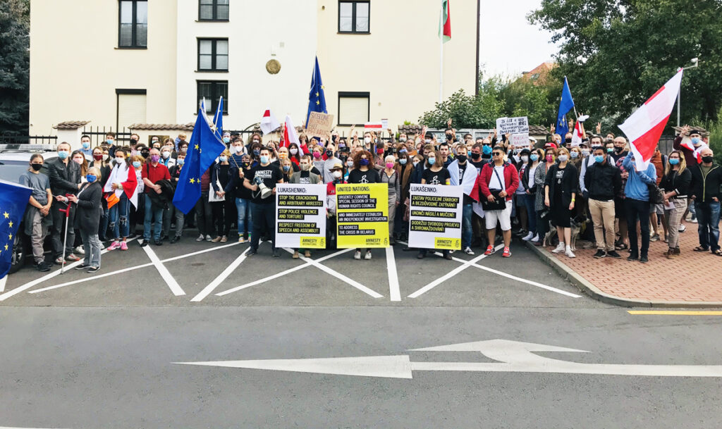 V září 2020 jsme před běloruskou ambasádu v pražské Troji svolali protest proti porušování lidských práv a svobod po sporných prezidentských volbách v Bělorusku. Protestu se účastnily dvě stovky lidí. Situaci v zemi dál sledujeme a usilujeme o zlepšení. Více zde.
