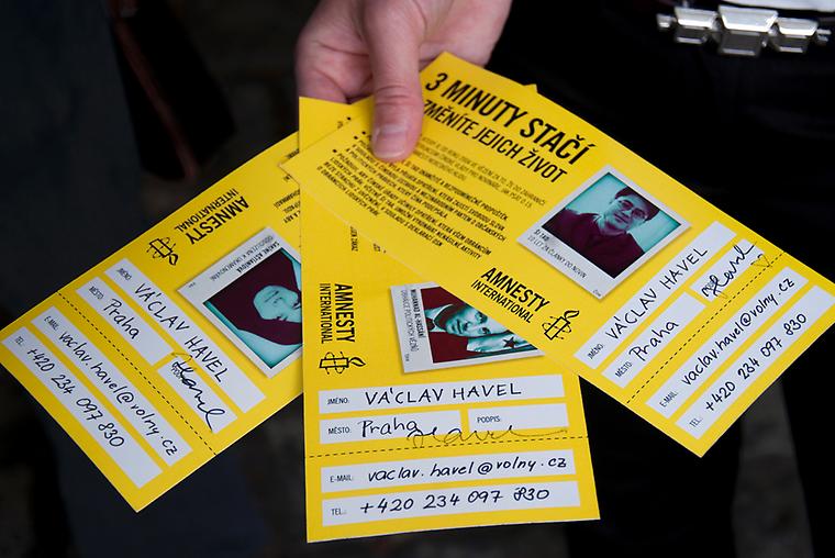Cílem akce bylo upozornit na situaci tří nespravedlivě vězněných lidí. Prvním signatářem dopisů, které putovaly do Číny, Sýrie a Íránu, se stal 17. května bývalý politický vězeň a prezident Václav Havel. Pod výzvy za propuštění konkrétních lidí se povedlo sesbírat 50 000 podpisů. (Amnesty před rokem 1989 usilovala za propuštění Václava Havla a dalších 400 vězněných a nespravedlivě pronásledovaných lidí v Československu.)