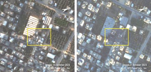 Dne 20. října zveřejnila izraelská armáda na sociálních sítích video záběrů z dronu, které Amnesty International přezkoumala a archivovala a které zachycuje okamžik leteckého útoku na budovu v areálu kostela. V prohlášení izraelské armády se uvádí, že „stíhačky IDF zasáhly velitelské a kontrolní středisko patřící teroristovi Hamásu, který se podílel na odpalování raket a minometů směrem na Izrael“, Uvádí také, že pouze „zeď kostela v oblasti byla poškozena“ v důsledku úderu, a ujišťuje, že „incident se přezkoumává“.
