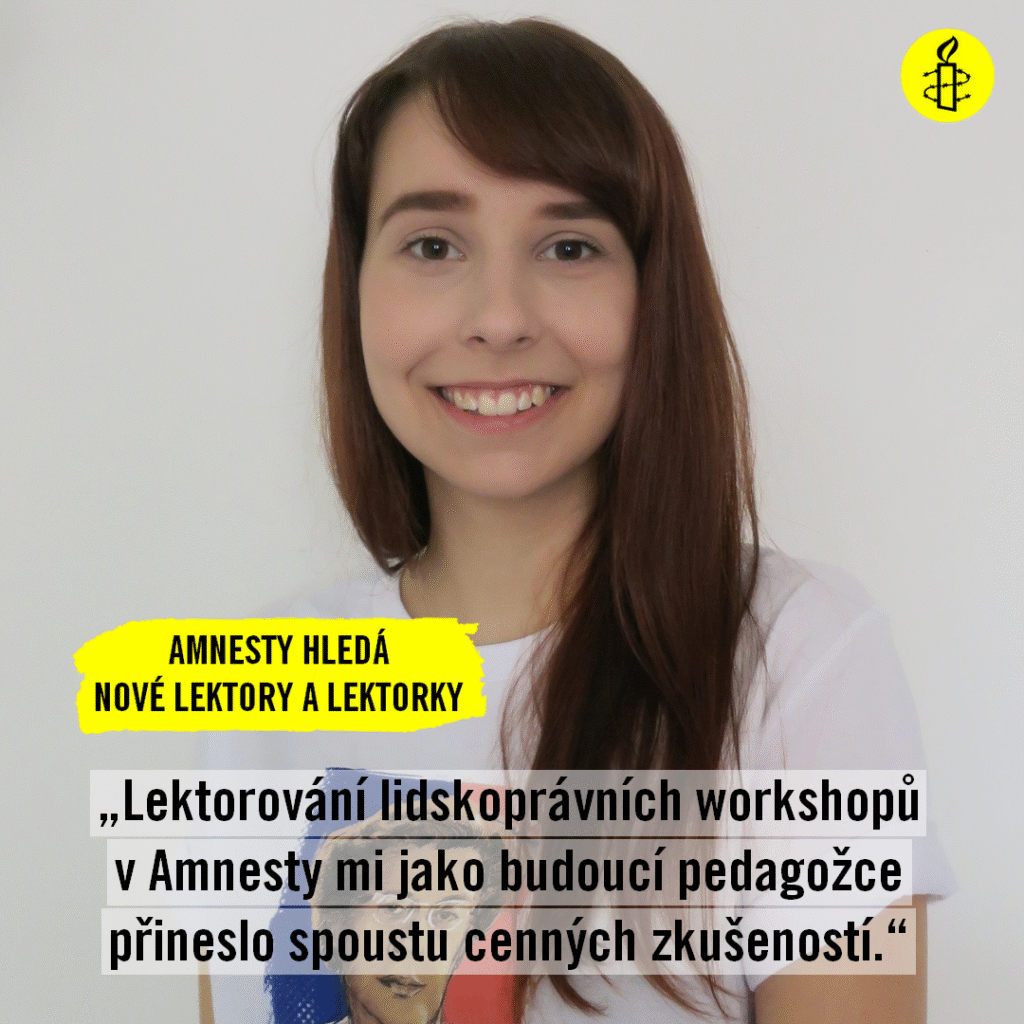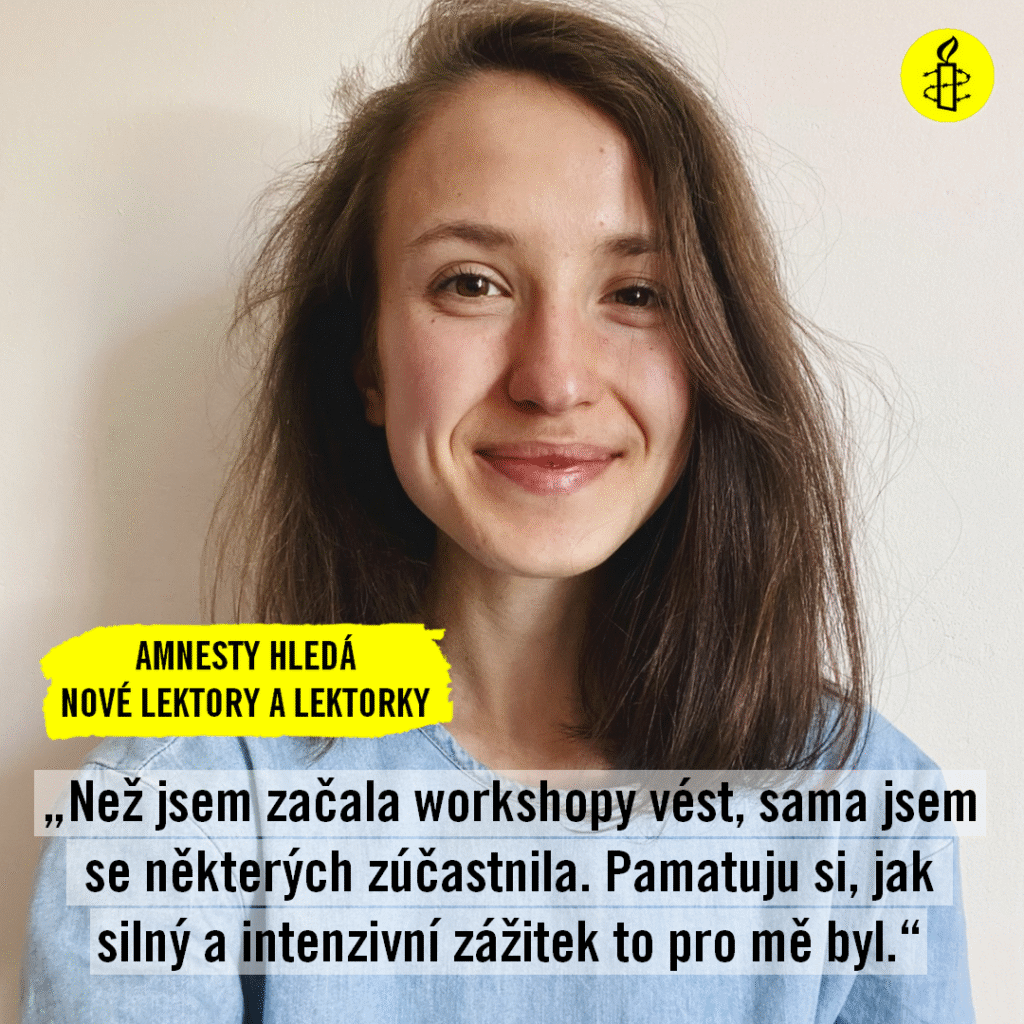 Lektorování lidskoprávních workshopů v Amnesty mi jako budoucí pedagožce přineslo spoustu cenných zkušeností. V lektorování na školách vidím velký potenciál, neboť věřím, že skrze edukaci a osvětu lze dosáhnout celospolečenské změny. Díky dobrovolnictví v Amnesty jsem získala nejen přehled o aktuálním lidskoprávním dění, ale také nové přátele, kteří věří ve stejné hodnoty.