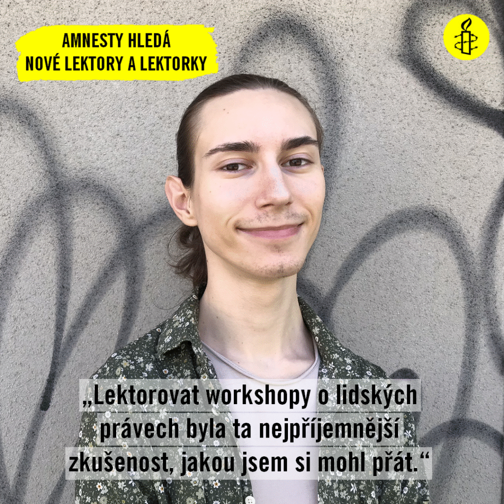 Jako budoucí učitel občanské výchovy musím říct, že lektorovat workshopy o lidských právech v Amnesty byla ta nejpříjemnější zkušenost, jakou jsem si mohl přát. Probíhá to tak, že vaši „nadřízení“ z Amnesty vám děkují za to, že s nimi dobrovolničíte. Ve školách, kam chodíte lektorovat, vám vyučující děkují za to, že dobrovolničíte. A když se workshop vydaří, tak Vám na konci děkují i žáci za to, že děláte záslužnou práci.