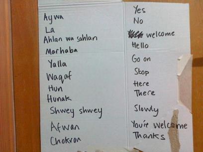 Některá základní arabská slovíčka nalepená na dveřích od koupelny, foto: Alena Džubáková