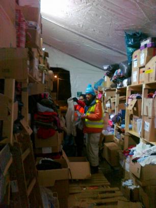 Potom balíčky pro předškolní děti, které zahrnovaly zimní kombinézu, mikinu, tričko s dlouhým rukávem, ponožky, rukavice, čepici, atd. Ještě později, jsme se rozhodli rozdělit na dvě skupiny – jedna rozdávající věci u autobusů, druhá čekající ve skladu na zprávu o tom, jestli něco nechybí. Nejednou jsme totiž potkali maminku v balerínkách s odřenýma nohama, která by potřebovala pořádné zimní boty. Dobrovolník u autobusu odhadl velikost boty, zprávu vysílačkou oznámil do skladu, kde už čekal další připraven vyběhnout s botami nebo kusem oblečení a nadějí, že se dostaví dřív, něž nastoupí zpět do autobusu. Tímto způsobem jsme inovovali proces transportu darovaných věcí k potřebným v podstatě neustále, protože pokaždé situace vypadala trochu jinak, pokaždé jsme měli jiné možnosti a nápady.