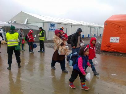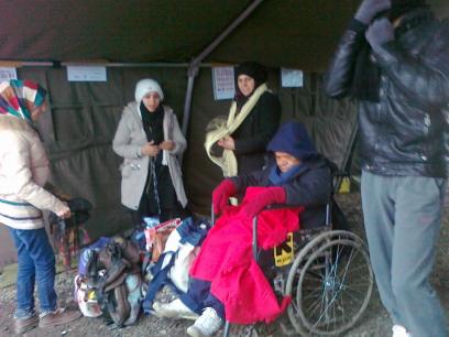 Uprchlíci do tábora jezdili autobusy, aby se zde zapsali, protože to byla jejich první registrační zastávka v EU, poté dále pokračovali vlakem na sever. Informace o příjezdu autobusu jsme dostávali pomocí vysílaček, vždy nějakou dobu dopředu. Nejednou se stalo, že oznámili příjezd za 20 minut, ale ještě za další 2 hodiny nikdo nikde.
