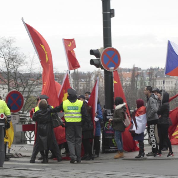 V tom okamžiku jsme byli s těžko uvěřitelnou agresivitou obsypáni čínskými demonstranty, kteří přes naše hesla přehazovali obří čínské vlajky a v závěru akce nám jeden z transparentů po předchozím bleskovém zahalení kolegyně do vlajky ukradli. Neschopnost Policie ČR oddělit protichůdné strany byla evidentní, co však čnělo z celé akce nejvíce, byla totální organizovanost a jistota čínských demonstrantů, že se při prosazování svých názorů mohou dopouštět omezování svobody druhých.
