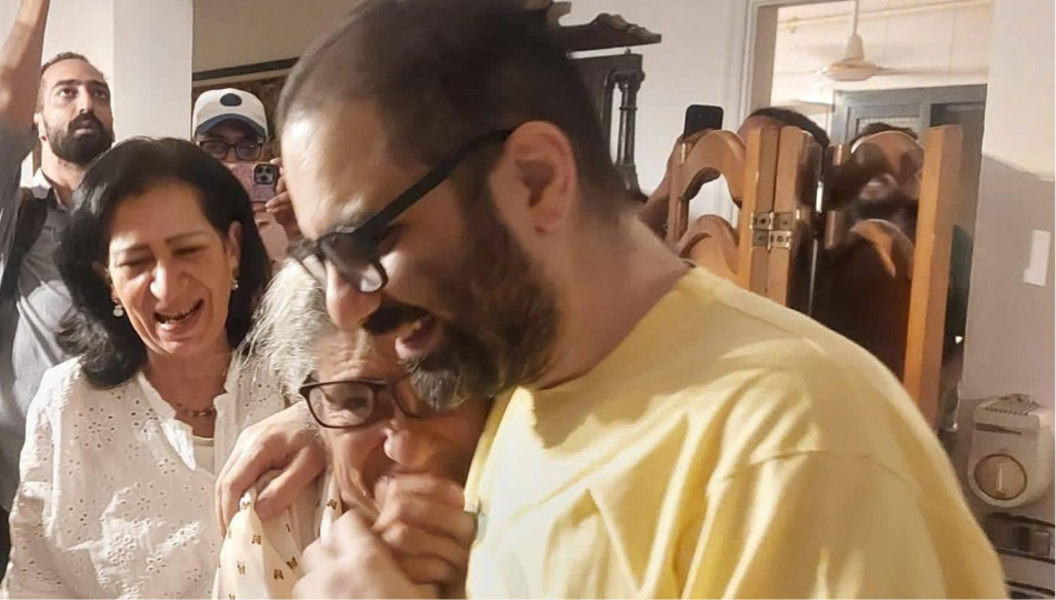 Alaa Abdel Fattah objímá svou matku v den, kdy byl propuštěn z vězení. Prezidentskou milost obdržel po šesti letech nespravedlivého věznění.