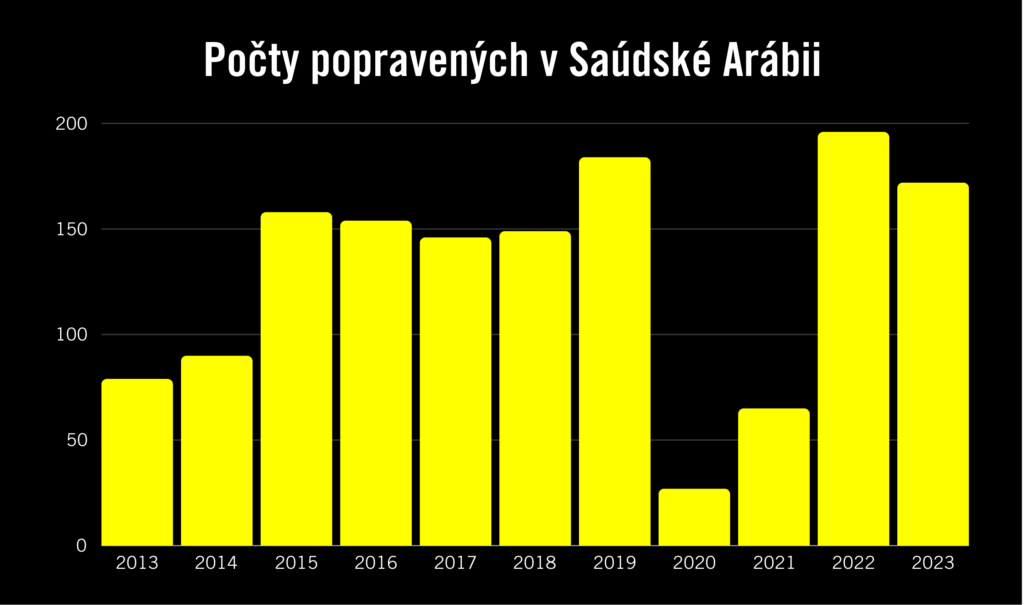 Mezitím se situace v oblasti lidských práv v království násodbně zhoršila. Kromě politiky nulové tolerance k jakékoliv kritice popravily saúdské úřady v roce 2022 196 lidí a nejméně 172 v roce 2023. A to navzdory slibům, že používání trestu smrti omezí. V roce 2022 šlo o nejvyšší počet poprav, který výzkumníci Amnesty v zemi za posledních 30 let zaznamenali.