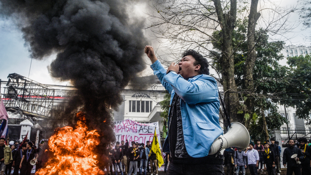 Krátce poté, co studenti začali křičet slogany, zasáhla